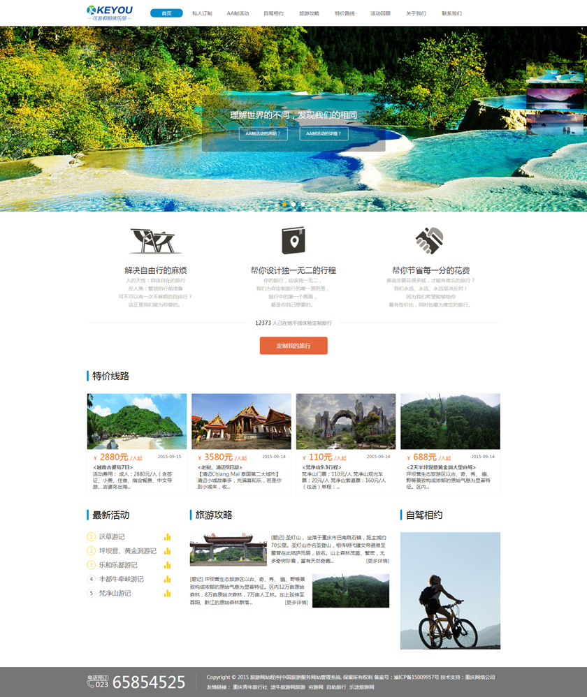 Project Description 6人游旅行网隶属于北京六人游国际旅行社有限公司。打造“为爱出行”:专为家庭,朋友,情侣间的旅行,提供私家小团精品游。打造高品质的旅行产品,解决传统跟团游和自由行存在的问题,将旅行服务做到臻善臻美。 Official website address 天门http://www.keyoujq.com I want to share